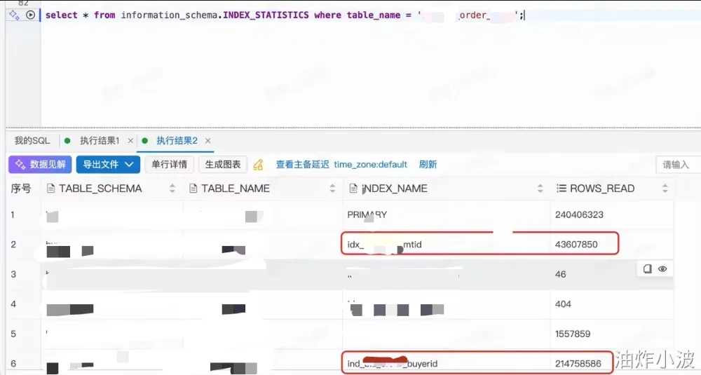 可以通过INFORMATION_SCHEMA.INDEX_STATISTICS表 来查看走各个索引查询返回的记录数: