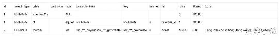 该慢SQL的explain后执行计划如下: