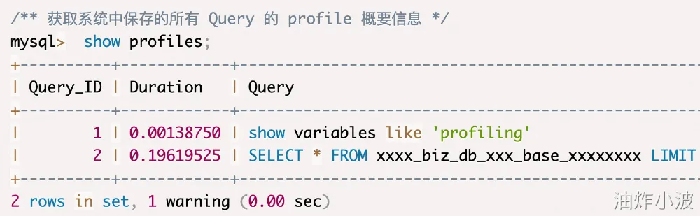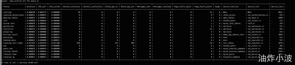 - 13.7.5.30 SHOW PROFILE Statement:https://dev.mysql.com/doc/refman/5.7/en/show-profile.html