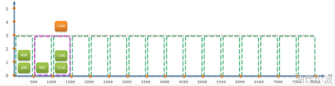 ●时间区间跨度为Interval / n ,例如n=2,则时间区间跨度为500ms