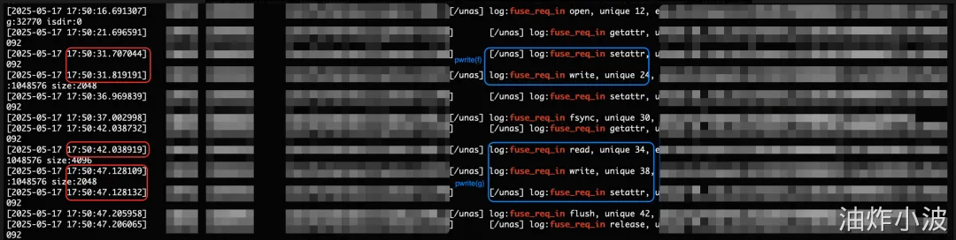 pwrite(42s)在文件末尾追加 1K 数据。 - 内核行为:内核先通过 getattr 和 read 请求读取目标页(4K)到 pagecache,再执行写入。