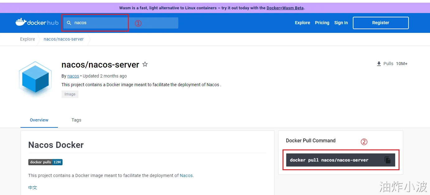 - dockerhub查看服务拉取指令:docker pull nacos/nacos-server