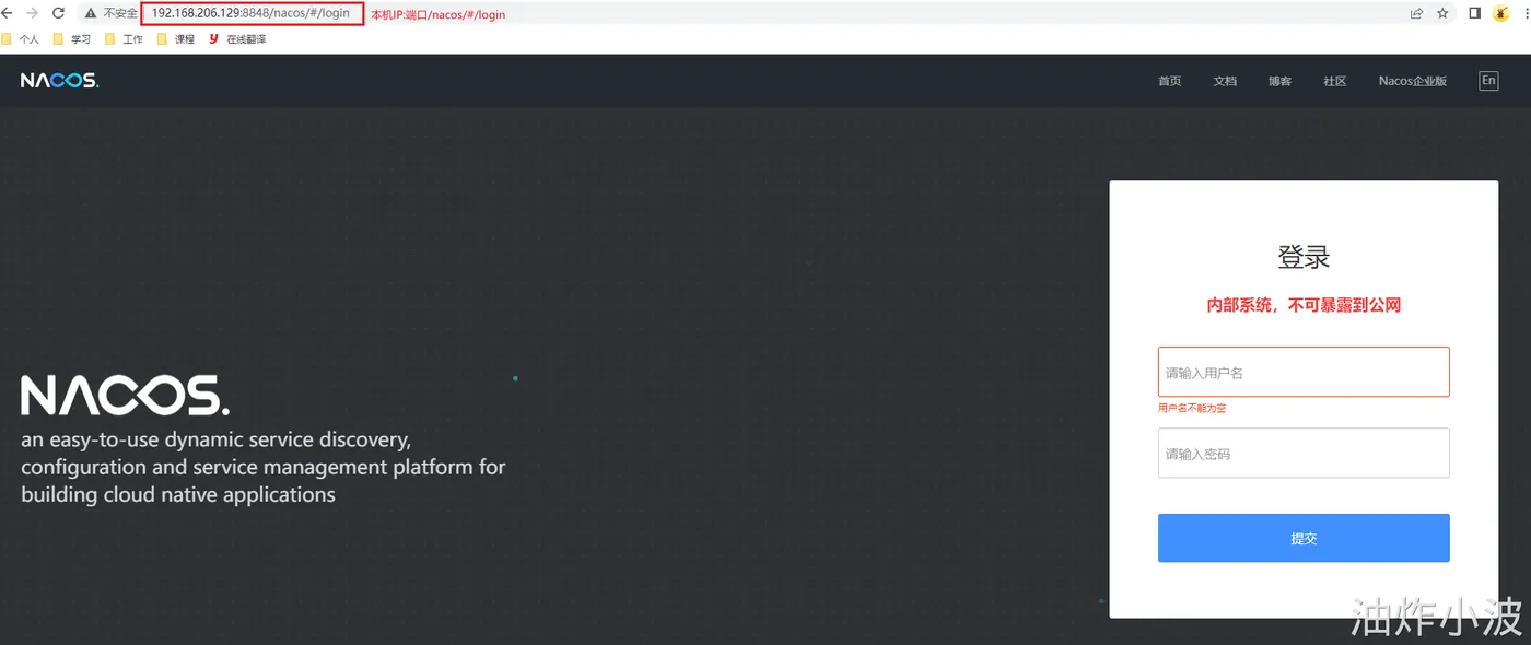 - 修改登录用户名:nacos,密码默认是nacos不用修改
