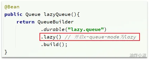 而要设置一个队列为惰性队列,只需要在声明队列时,指定x-queue-mode属性为lazy即可。可以通过命令行将一个运行中的队列修改为惰性队列:
