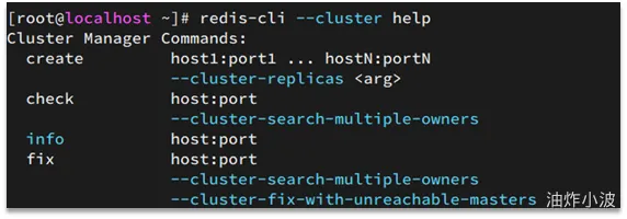 redis-cli --cluster提供了很多操作集群的命令,可以通过下面方式查看: