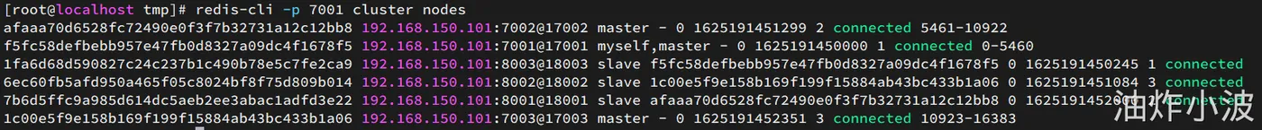 redis-cli -p 7001 cluster nodes