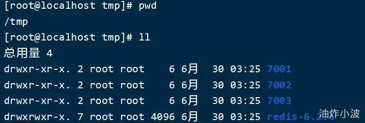 修改每个文件夹内的配置文件,将端口分别修改为7001、7002、7003,将rdb文件保存位置都修改为自己所在目录(在/tmp目录执行下列命令):