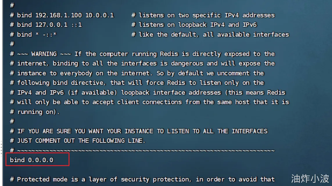 虚拟机本身有多个IP,为了避免将来混乱,我们需要在redis.conf文件中指定每一个实例的绑定ip信息,格式如下(下面这个只是语法说明,别执行):