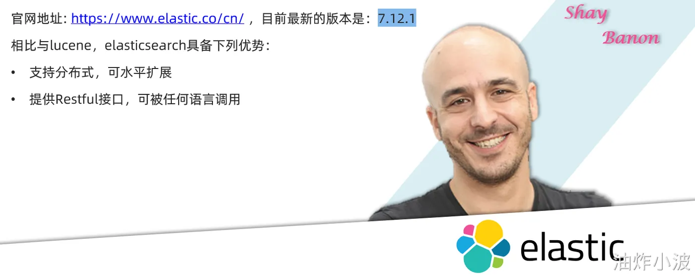 - 2010年Shay Banon 重写了Compass,取名为Elasticsearch。