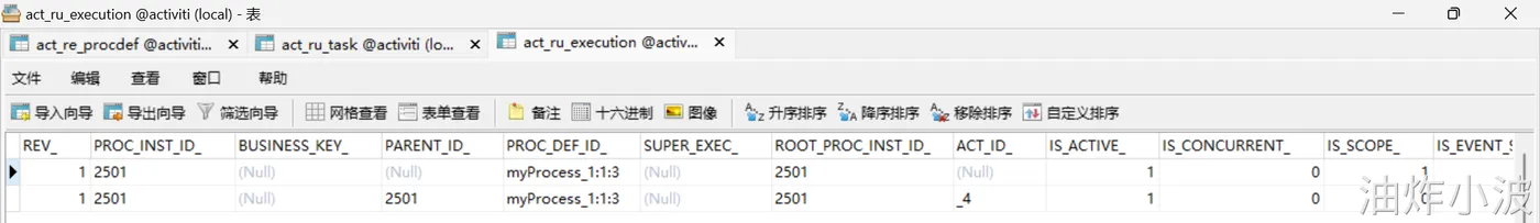 同时可以查看到流程的多个任务节点信息:act_ru_execution