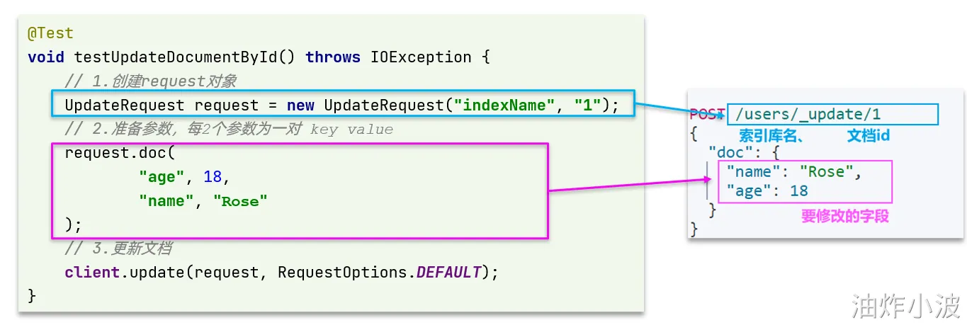 • 3)更新文档。这里调用client.update()方法