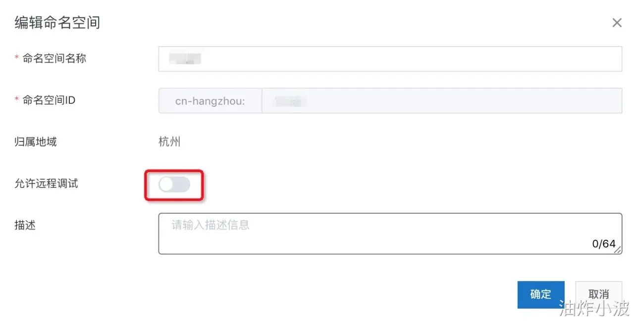 不过对于线上的应用而言,如果随便一个开发人员都能进行随意的变更,这是一件很不安全的事情。EDAS 在命名空间设计的时候,也考虑到了这个问题,解决的办法就是 EDAS 上的命名空间,其用途是用来隔离环境之间的服务与配置用的。可以理解成通常意义上的环境,如:开发、测试、生产等。为避免用户在 IDE 插件中误将线上环境进行变更,我们对命名空间加入了一个允许远程调试的选项,开启之后才能在 IDE 中进行相应的操作,此开关默认为关闭状态。如下图所示: