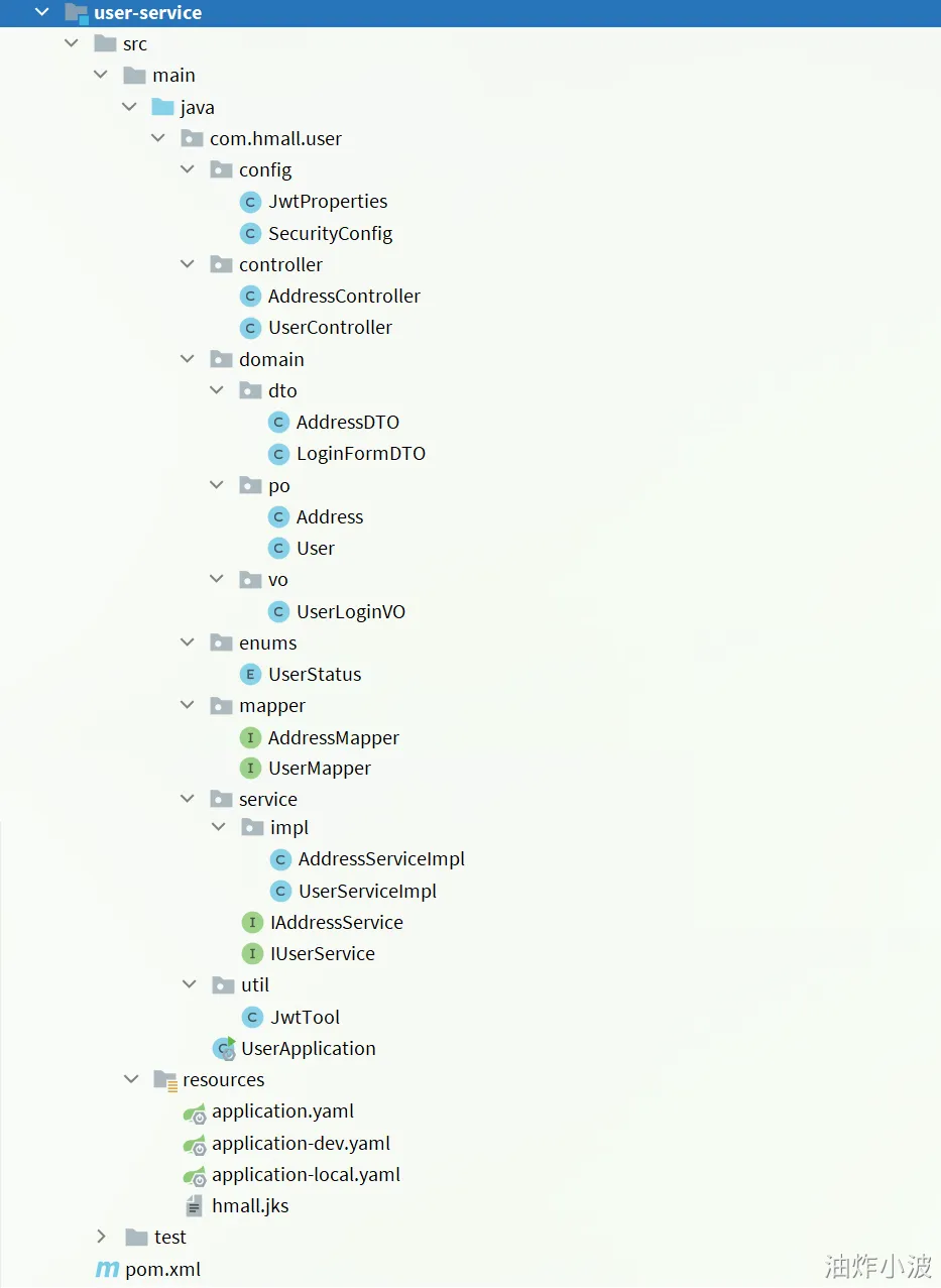 复制hm-service中所有与user、address、jwt有关的代码,最终项目结构如下: