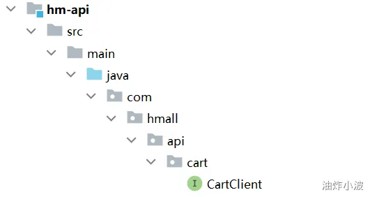 我们在hm-api模块的com.hmall.api.cart包下定义一个CartClient接口: