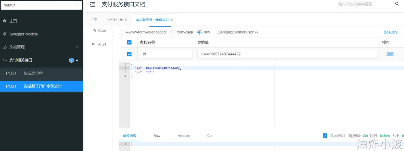 启动PayApplication,访问http://localhost:8086/doc.html。