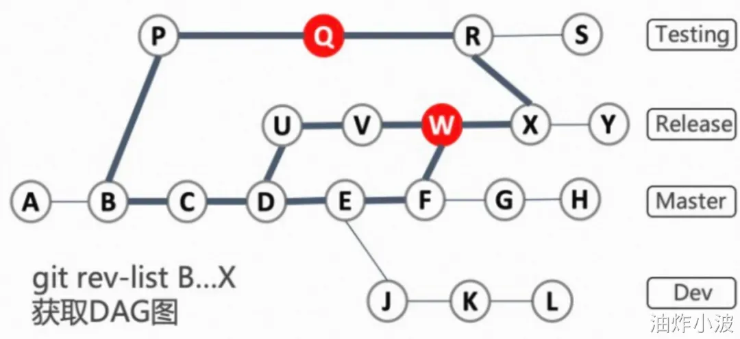 图7 红色QW为毒药commit下的git历史DAG