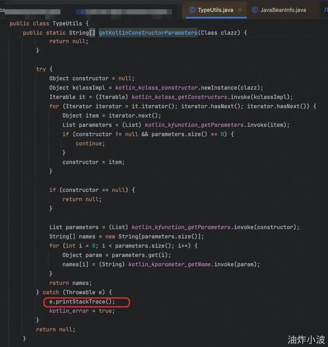 文章对FastJson剖析挺深,感觉我们的工程不至于这么奇葩吧。还提到了什么getKoltinConstructorParameters、Unit变量、kotlin_error标记位问题。核心原因是有个静态标记位被置为异常状态。