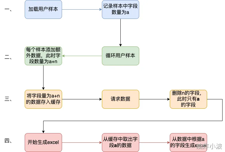 4. 开始生成excel,将200mb数据从缓存中取出,并根据之前记录的a个字段,取出初始的样本字段填充至excel。