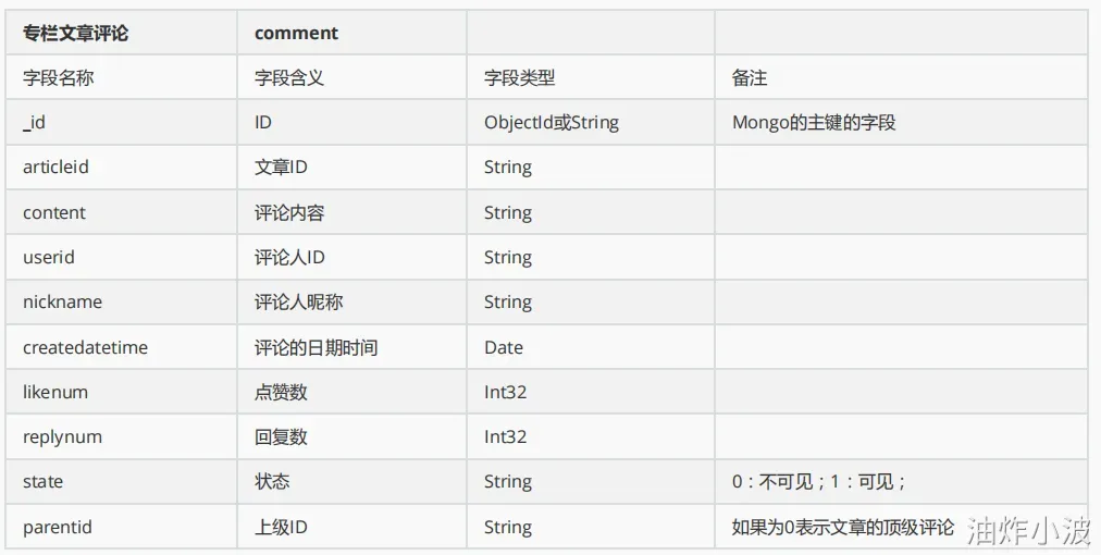 存放文章评论的数据存放到MongoDB中,数据结构参考如下: 数据库:articledb