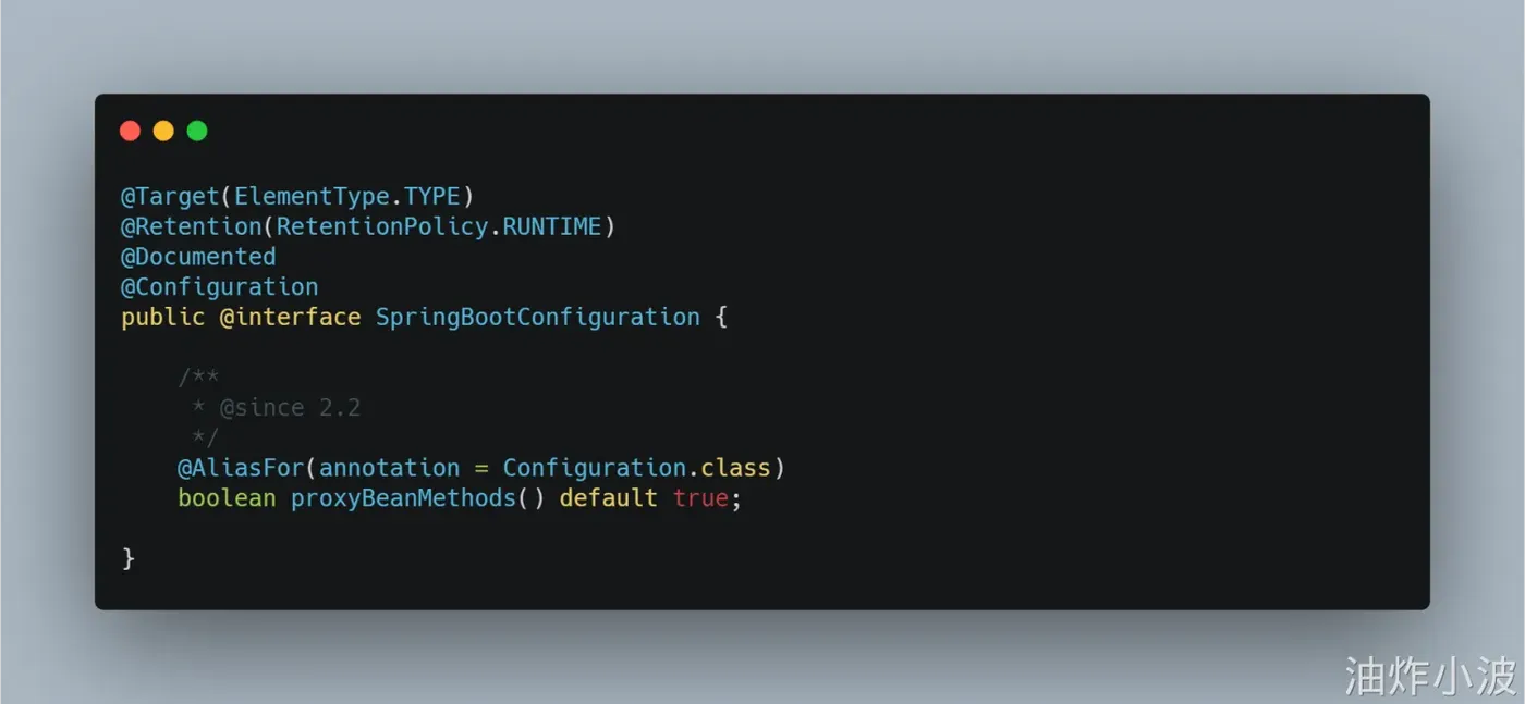 @SpringBootConfiguration标注主启动类,声明为一个配置类,为@EnableAutoConfiguration服务。