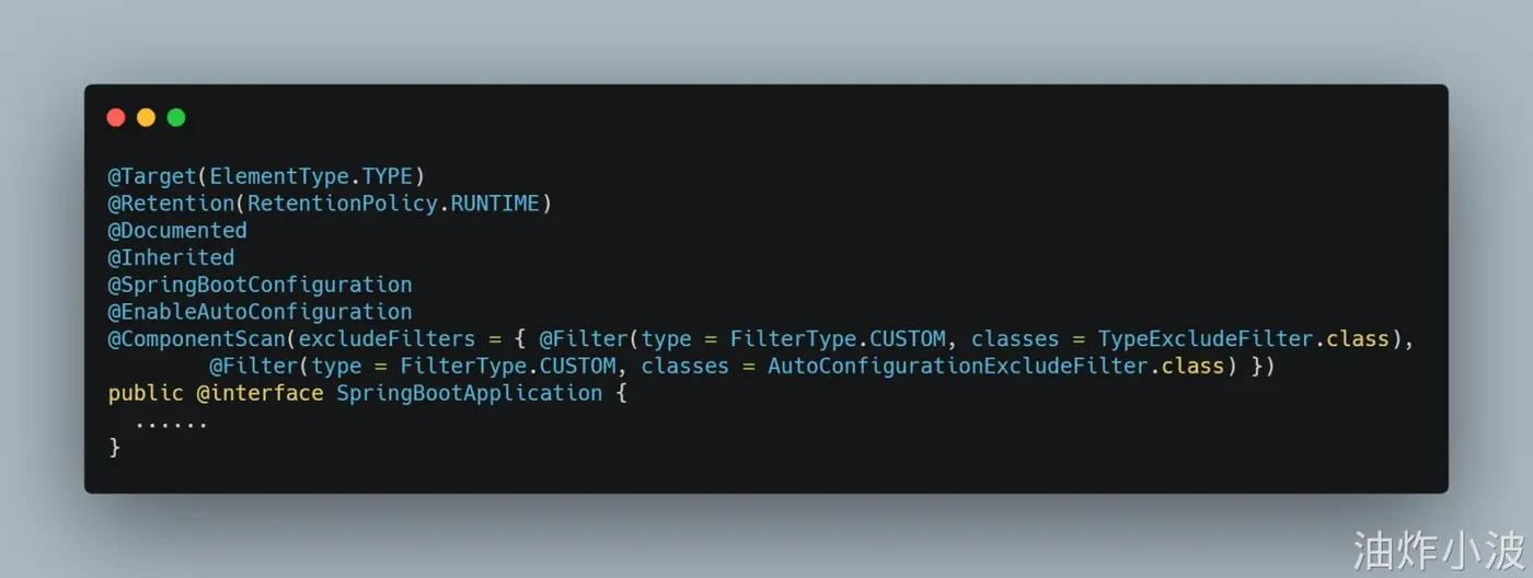 @SpringBootApplication这个组合注解,主要分4个元注解+3个自定义注解: