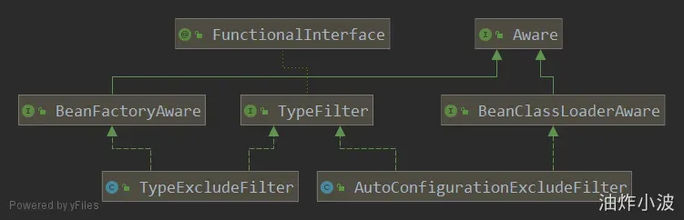 @ComponentScan告诉去哪里扫描,如果遇到不想在启动初期加载进IOC容器的,主启动类组件通过TypeExcludeFilter,自动配置组件通过AutoConfigurationExcludeFilter进行过滤。