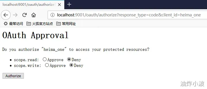 登录成功后询问用户是否给予操作资源的权限,具体给什么权限。Approve是授权,Deny是拒绝。