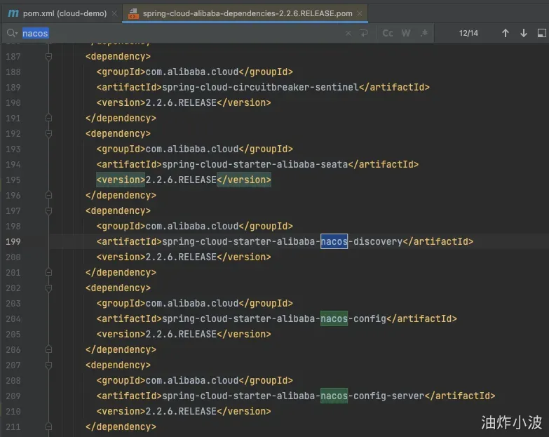 因为Spring-cloud-alibaba自身也是集成了多个组件,所以这里只需引入alibaba大管家即可