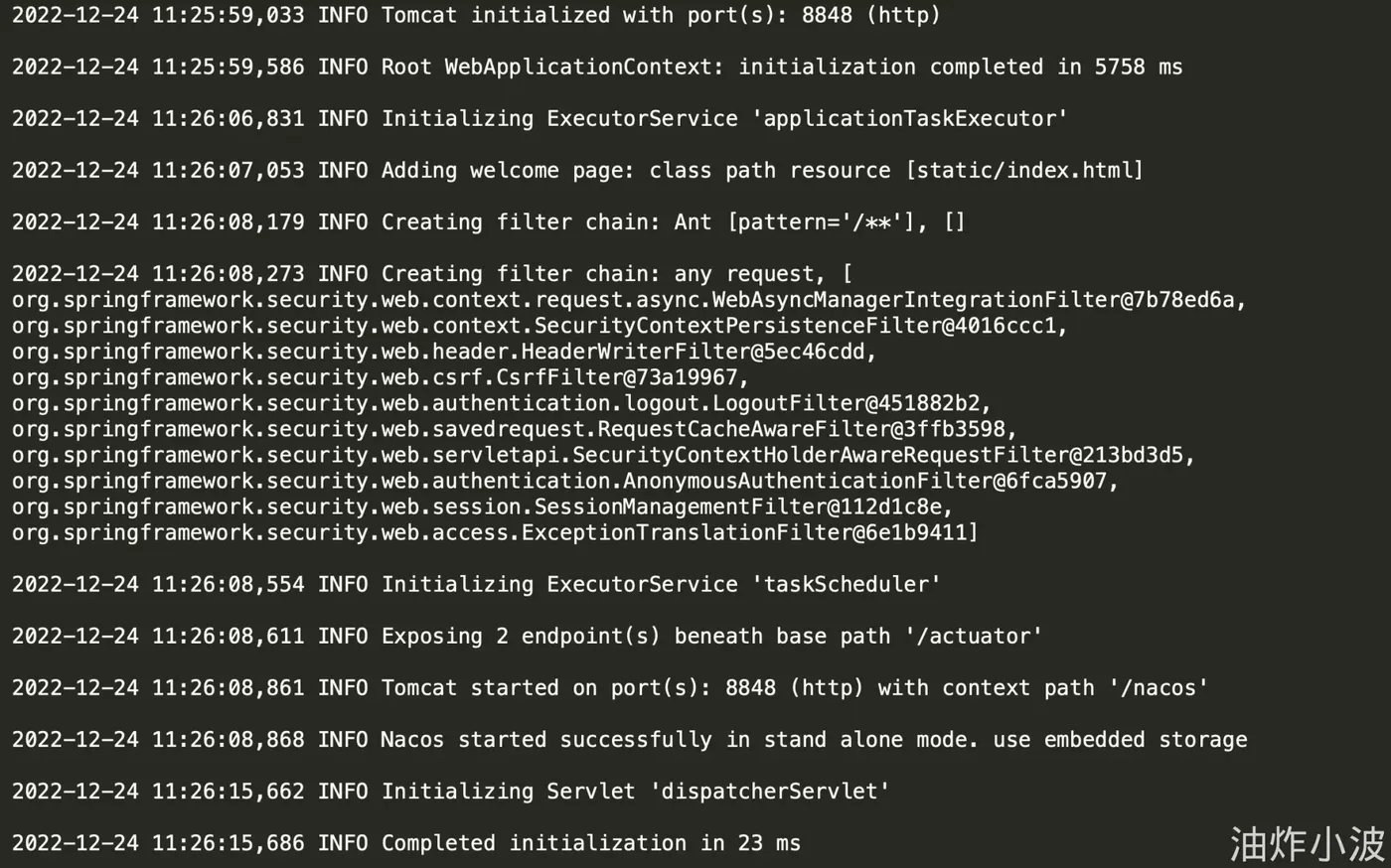 2022-12-24 11:25:59,033 INFO TOMCAT INITIALIZED WITH PORT(S): 8848 (HTTP)
