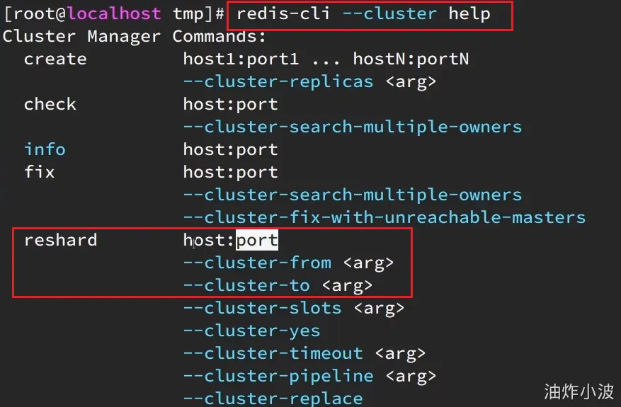redis-cli --cluster提供了很多操作集群的命令,可以通过下面方式查看: