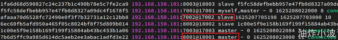 - 注意查看下面的日志,可以看到8001本来是7002的从节点,有slave 7002的id