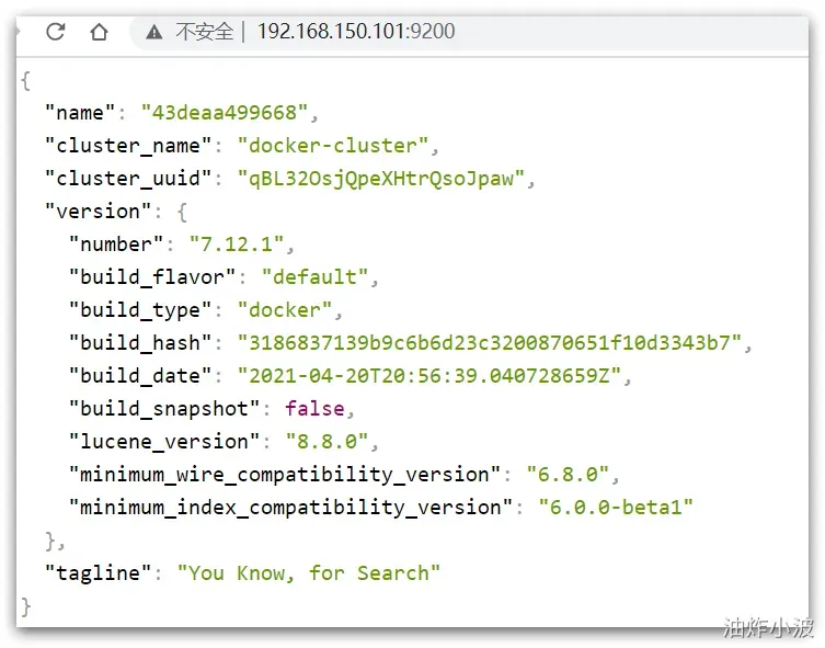在浏览器中输入:http://192.168.150.101:9200 即可看到elasticsearch的响应结果: