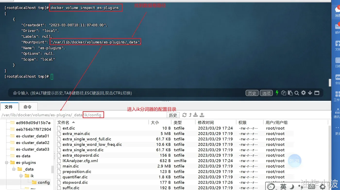 ●-v es-plugins:/usr/share/elasticsearch/plugins:挂载逻辑卷,绑定es的插件目录