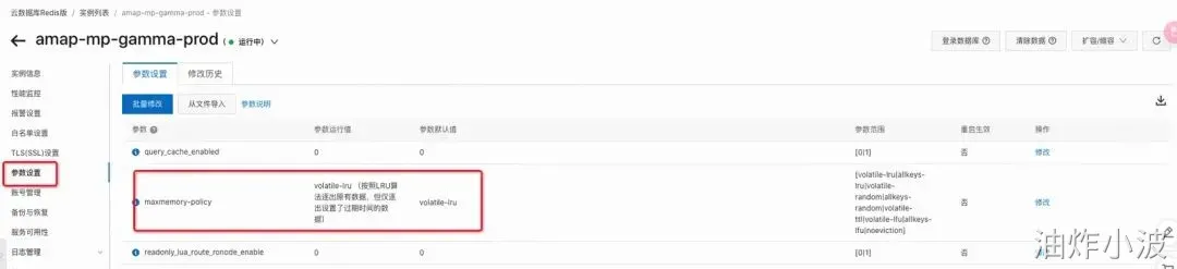 云数据库Redis默认的默认逐出策略为 volatile-lru ,关于各逐出策略的说明,请参见Redis配置参数列表。 |