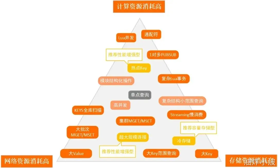 使用通配符、Lua并发、1对多的PUBSUB、热点Key等会大量消耗计算资源,集群架构下还会导致访问倾斜,无法有效利用所有数据分片。 |