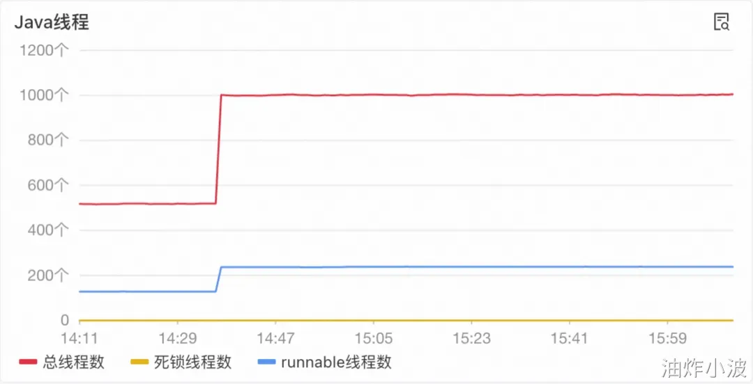 在调整bucket数量后,修复上线,线程数降到了理想范围,解决了线程数量突增的问题。