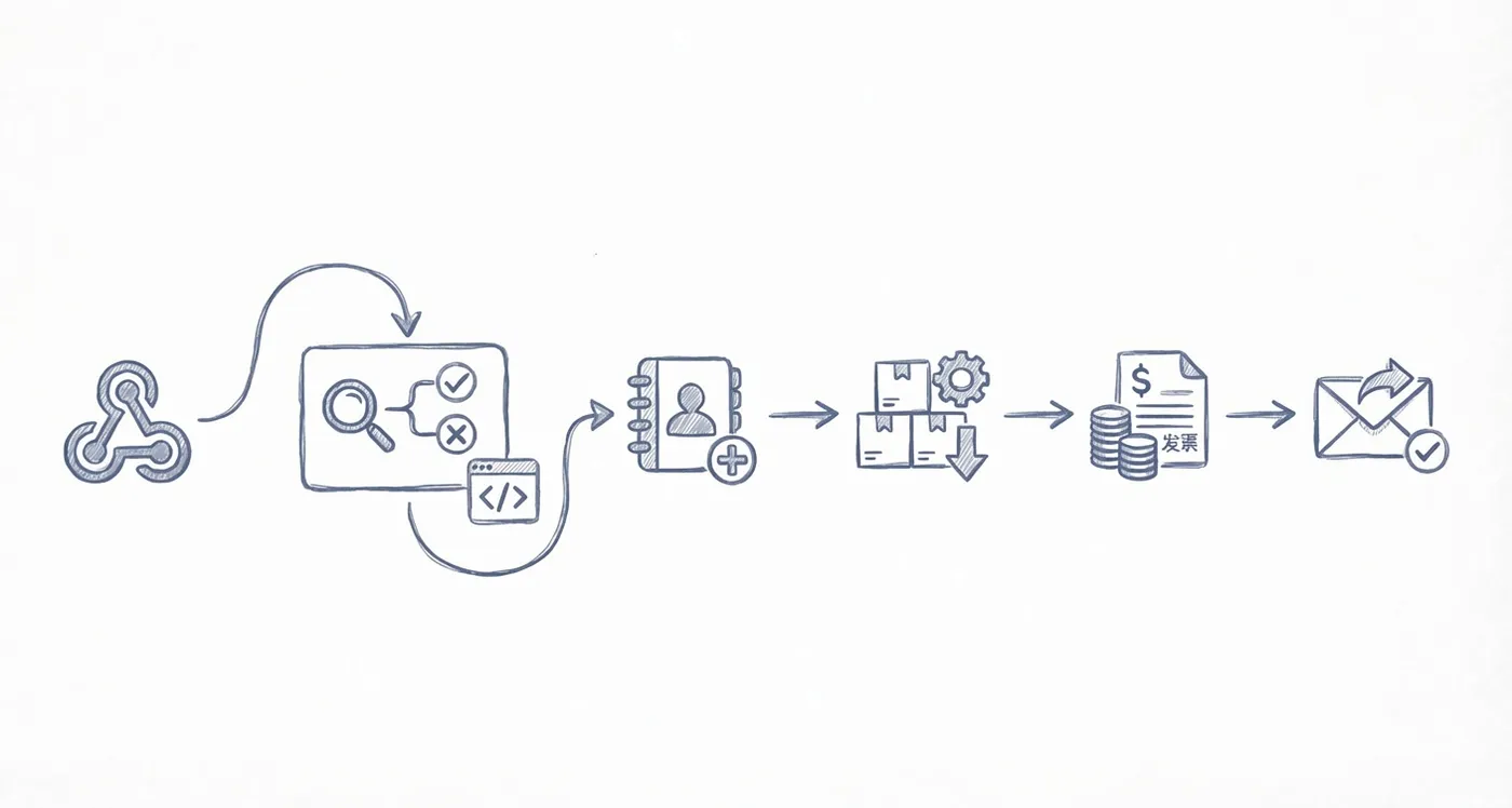 问题: 新订单来了要手动同步 CRM、库存系统、财务软件,一不小心就漏同步。