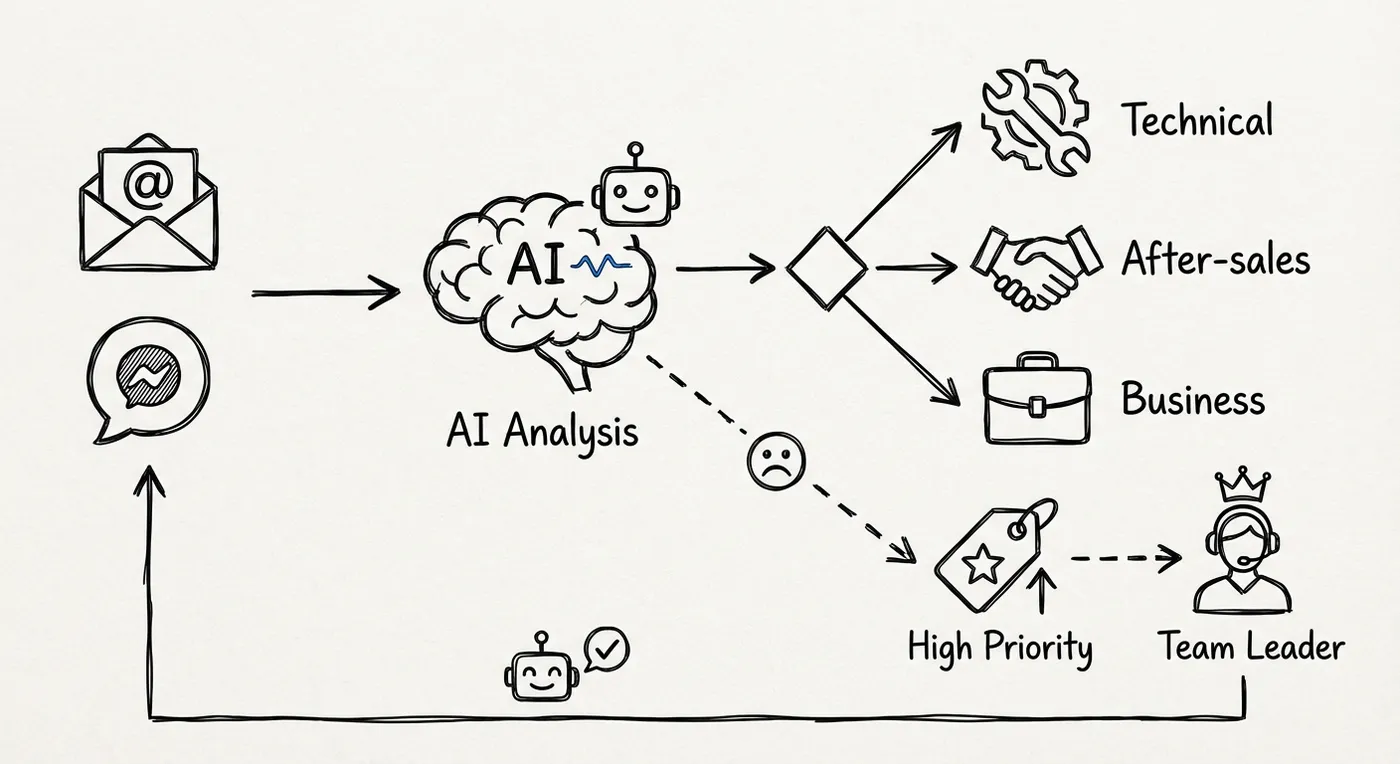 问题: 客服邮件和消息堆成山,谁是紧急、谁可以稍后处理,全靠人工判断。