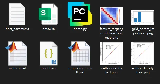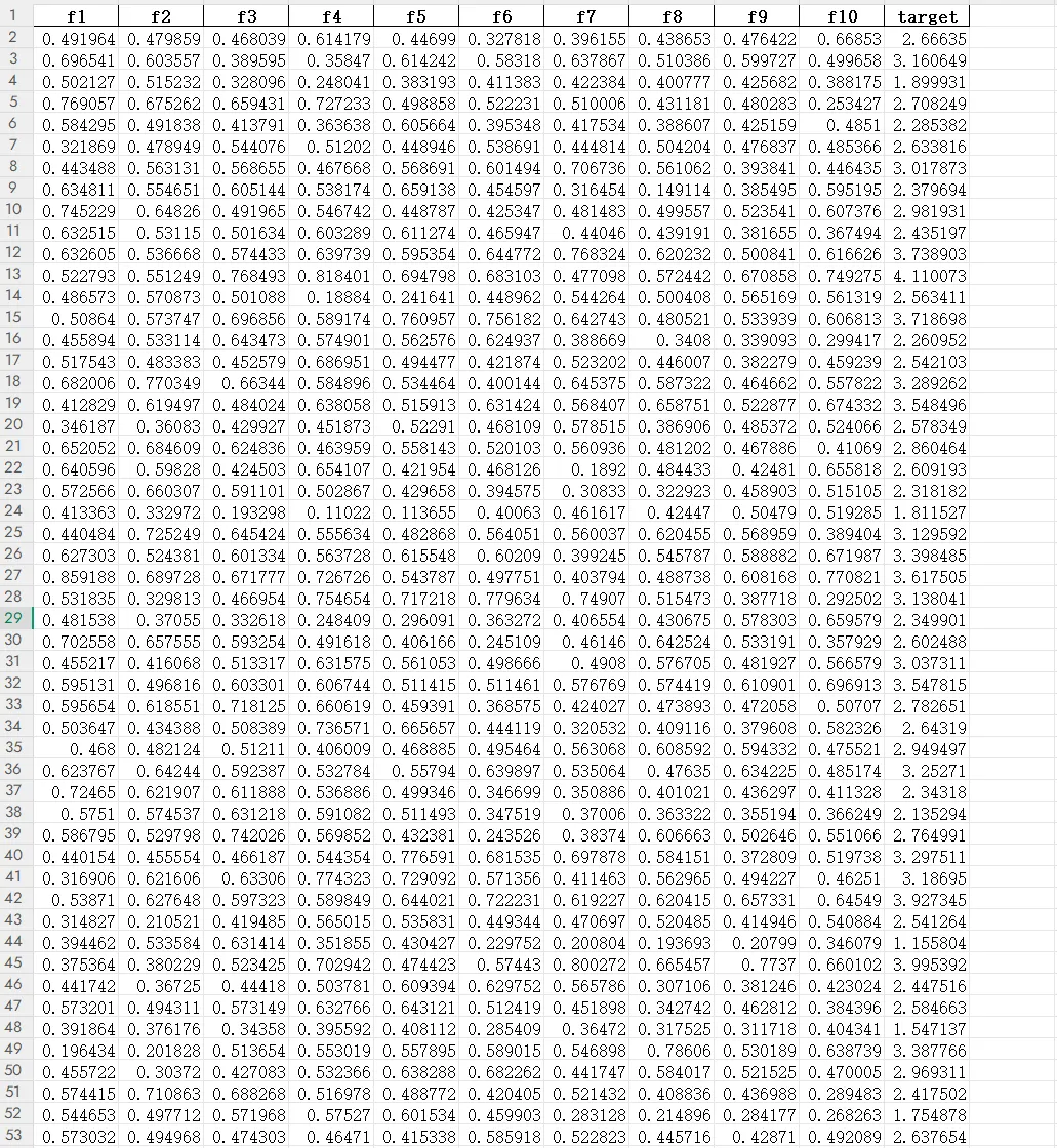 我的程序中给出数据data.xlsx(代码及数据见文末),10 列特征值,1 个目标值,适用于各行各业回归预测算法的需求,其中出图及数据自动保存在当前目录,设置的训练集与预测集的比例为 80%:20%。