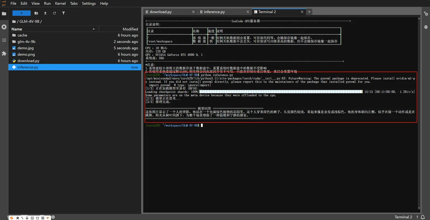 本教程将指导你如何在已安装 PyTorch 的 Linux 服务器上,快速完成 GLM-4V-9B 的部署与推理。