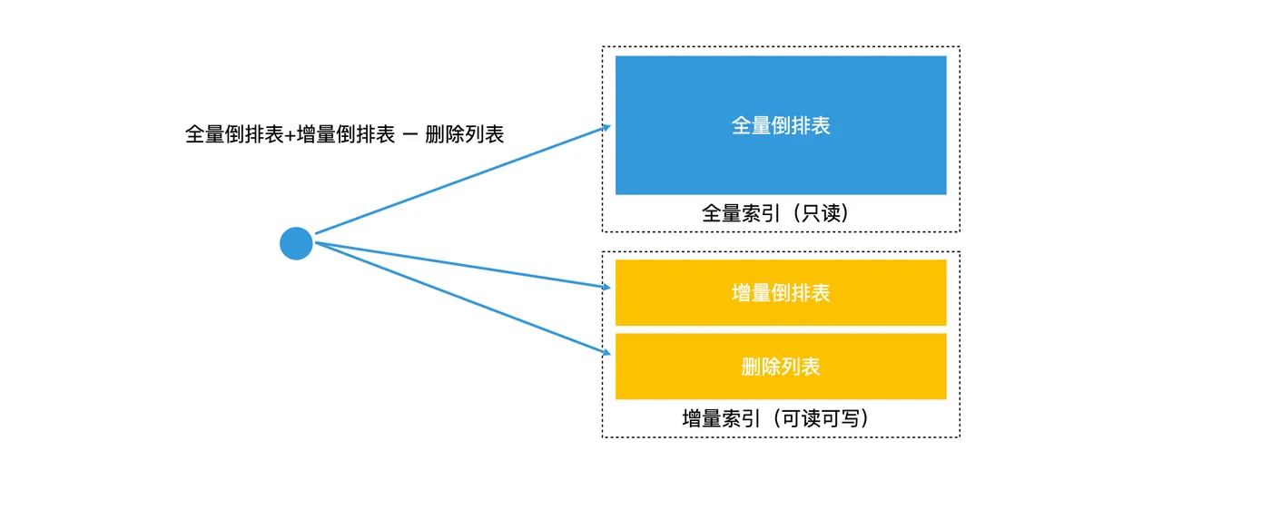 因此,完整的全量索引结合增量索引检索方案,需要在增量索引中保存一个删除列表。