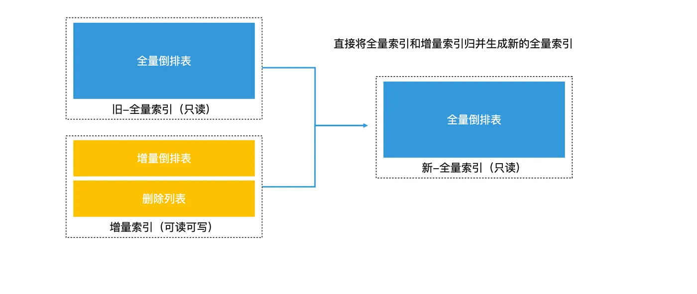 - 当有多个周级索引的时候,全量索引会和多个周级索引合并,生成一份新的全量索引。(不过,一般这一步会用重新生成全量索引来代替,你可以理解为为了保证系统的稳定性,需要定期进行索引重建。就像系统要进行定期重启一样)。