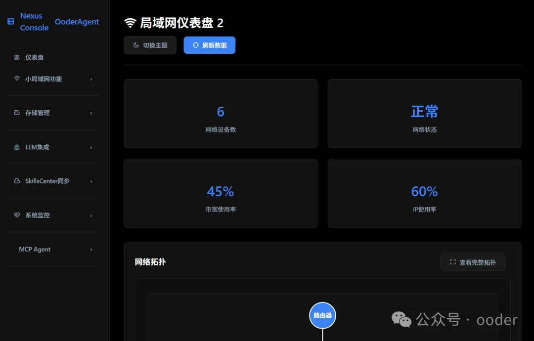 OoderAgent V0.6.5 作为标志性版本,正式补齐了基础网络管理与Skills技能执行的核心能力,搭建起P2P AI通信的核心骨架,为后续各类AI应用落地奠定了坚实基础。但不可忽视的是,底层协议的枯燥晦涩、纯命令行的操作模式,如同两道门槛,将多数热爱AI的开发者、爱好者挡在门外,让核心能力难以被快速感知和应用——这也是Nexus基于该版本开发的核心初衷,用可视化页面打破门槛,让技术能力更易触达。