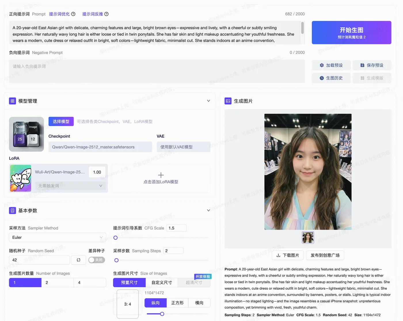 阿里智能引擎提出一个全新方案:针对 Qwen 最新开源模型,成功将 SOTA 压缩水平推进到了 2 步(Step)。 在保证极具竞争力的生成效果前提下,实现了 40 倍的惊人加速。用户等待 5 秒左右即可生成 4 张 2k 分辨率的图片