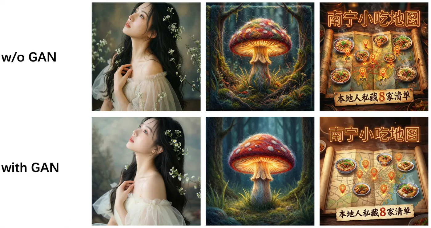 极少步数扩散生成一直是一个重要的方向,然而,单一算法方案受限于其本身的原理设计,往往存在一些不尽如人意的问题。团队正是从落地效果出发,逐个发现并分析蒸馏带来的效果问题(如扭曲、纹理确实)并针对性解决,才能使得最后的2步生成模型达到工业场景可落地的水准。