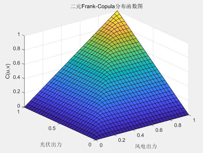 Copula函数的核心思想源于Sklar定理。对于任意d维联合分布函数F(x₁,x₂,...,x_d),若其边缘分布函数分别为F₁(x₁),F₂(x₂),...,F_d(x_d),则存在唯一的Copula函数C,使得F(x₁,x₂,...,x_d)=C(F₁(x₁),F₂(x₂),...,F_d(x_d))。该定理表明,联合分布可分解为各变量的边缘分布和描述变量间相依结构的Copula函数两部分,这为风光出力联合分布建模提供了理论支撑。