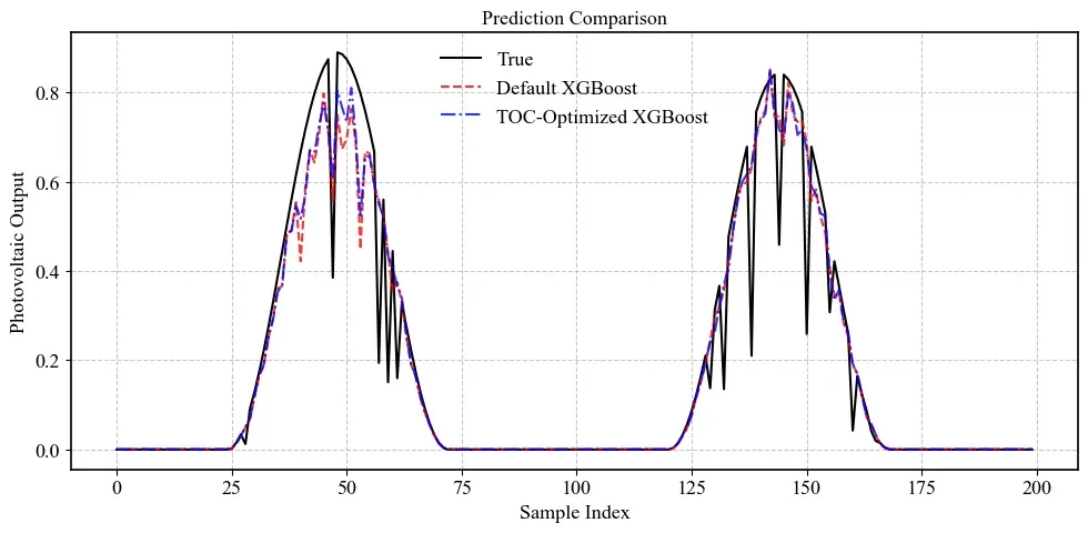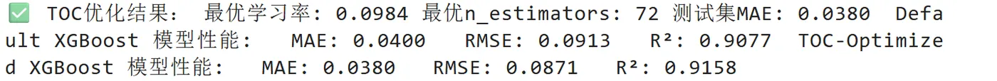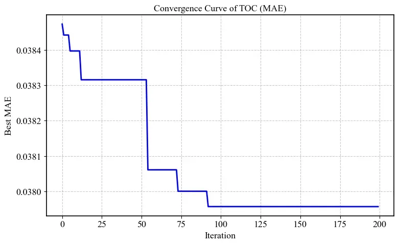 - 外层优化循环:TOC以预测误差(MAE/RMSE)为适应度函数,动态调整XGBoost超参数组合。