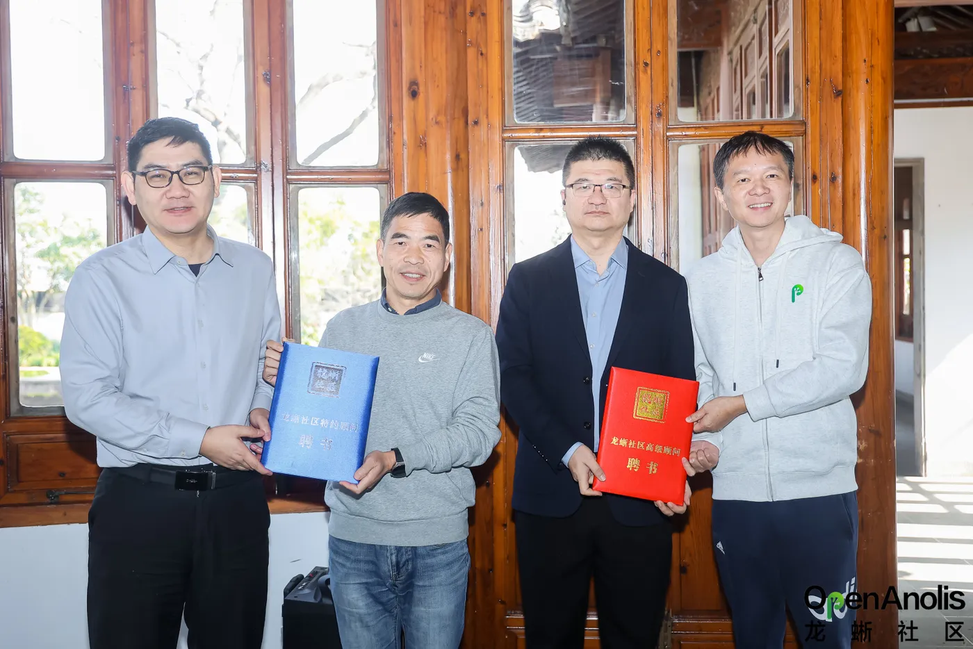第二届顾问团的成立,承载了龙蜥社区各家单位和行业的期待。接下来,他们将定期参与理事会重要决议,出席龙蜥重大活动,为龙蜥的发展提供战略指导。各位顾问专家通过现场发言和线上发言的方式表达了对龙蜥的高度肯定和支持,也围绕龙蜥操作系统在 AI 时代的创新方向、RISC-V 与龙蜥深度协同、可信供应链认证体系等提出多条助力社区更快更好发展的核心建议,为社区高质量发展注入前瞻性思路与实践路径。在会议现场,龙蜥社区理事长马涛和副理事长张东为现场顾问颁发聘书,第二届龙蜥社区顾问团正式成立(官网组织架构已更新)。