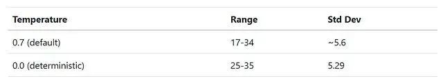 面对方差的第一反应自然是把 LLM temperature 调低,追求确定性行为。测了: