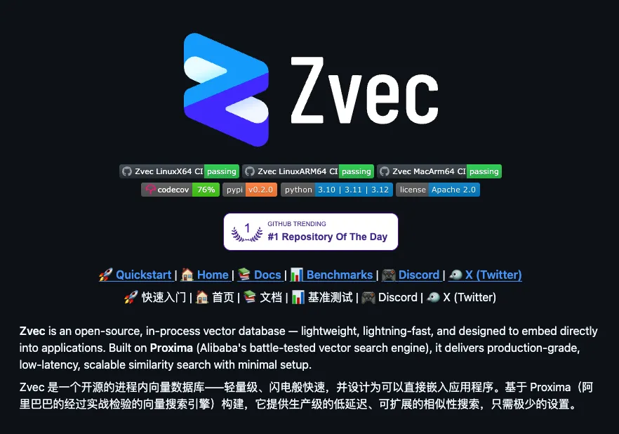 ZVec是阿里巴巴开源的一款轻量级、闪电般快速的嵌入式向量数据库,它让RAG(检索增强生成)应用首次能够在边缘设备上实现高性能的本地向量检索。 简单来说,它就像给AI应用装了一个"超级记忆芯片"——不需要联网、不需要部署复杂的服务器,只需几行代码,你的应用就能拥有"过目不忘"的能力,瞬间从海量文档中找到最相关的答案。无论是手机App、IoT设备,还是浏览器插件,ZVec都能让AI在本地实现毫秒级的语义搜索,而且完全免费、开箱即用。